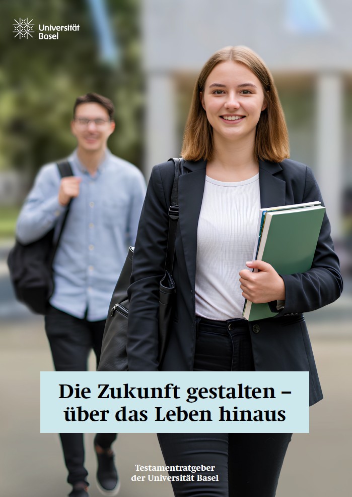 Die Universität Basel bietet den neuen Testament-Ratgeber «Die Zukunft gestalten – über das Leben hinaus» an. Er zeigt Ihnen einfach und übersichtlich, wie Sie Ihren letzten Willen gestalten können. Sie erfahren, was bei der Testamentserstellung zu beachten ist und wie Sie die Universität Basel mit einem Vermächtnis unterstützen können. Die Broschüre stellt zudem Bereiche vor, in denen Sie mit Ihrem Engagement Zukunft gestalten können und erläutert verschiedene Förderformen.