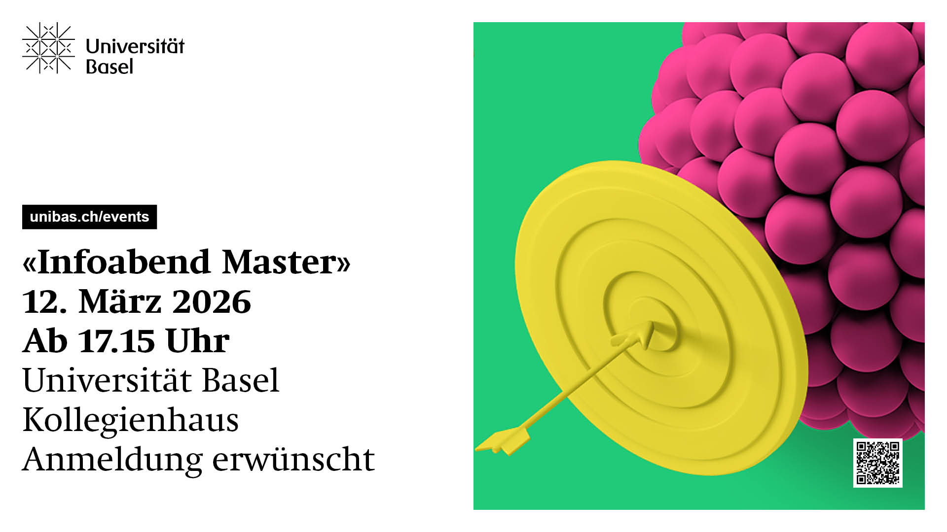 Sie können Ihren Anlass ebenfalls im Veranstaltungskalender eintragen lassen, sofern er die oben genannten Kriterien erfüllt. Senden Sie dazu Titel, Kurztext, Zeit, Ort, Veranstalter, Link auf Webseite und falls vorhanden Foto (JPG) und Programmflyer (PDF) an E-Mail: agenda@unibas.ch