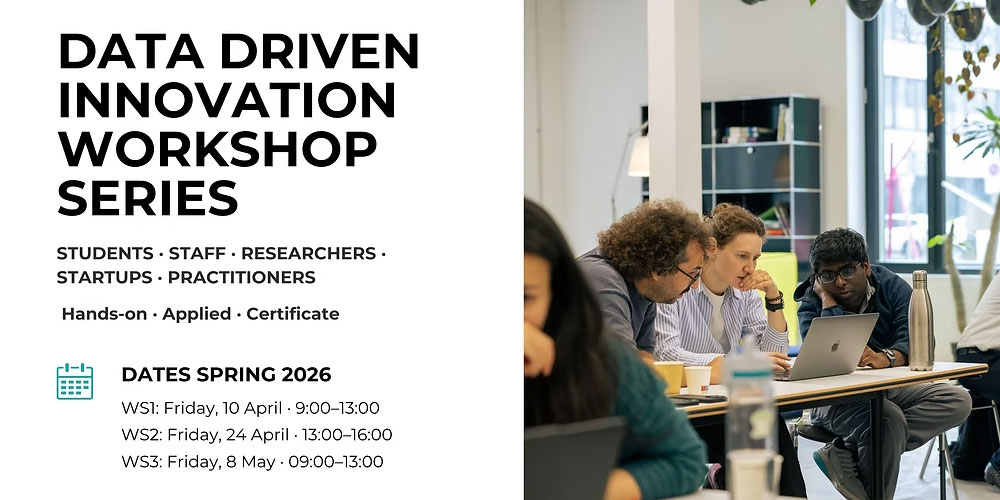 How do you turn data and AI into meaningful, responsible innovation that creates value and trust? Data Driven Innovation – From Ideas to Impact is a hands-on, three-part workshop series for students, researchers, university staff, startups, and practitioners who want to work towards concrete data-driven concepts.