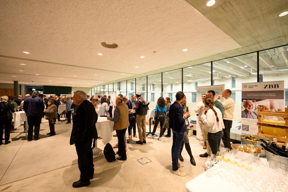 Der anschliessende Apéro bot Raum für vertiefte Gespräche an thematischen Stationen. Gerade dieser informelle Austausch zwischen Gästen und Forschenden erwies sich als tragendes Element des Formats und machte sichtbar, wie Forschung an der Universität Basel auf Wirkung und Umsetzung ausgerichtet ist.